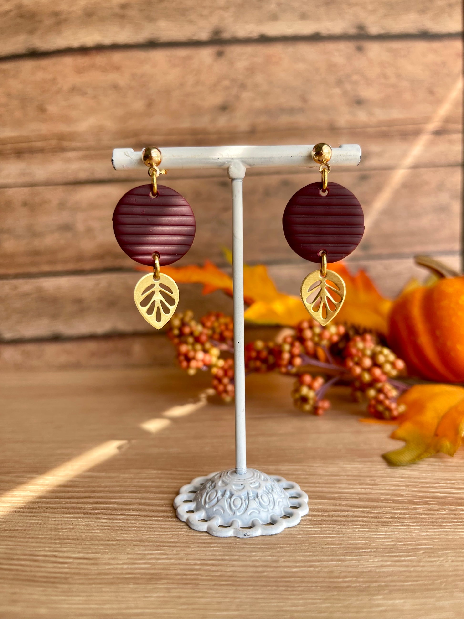 Stephanie earrings combine elegance and versatility with its gold leaf charm and warm burgundy color. The minimalistic design and small dangling style make it perfect for any occasion. Elevate your look with a subtle pop of color.