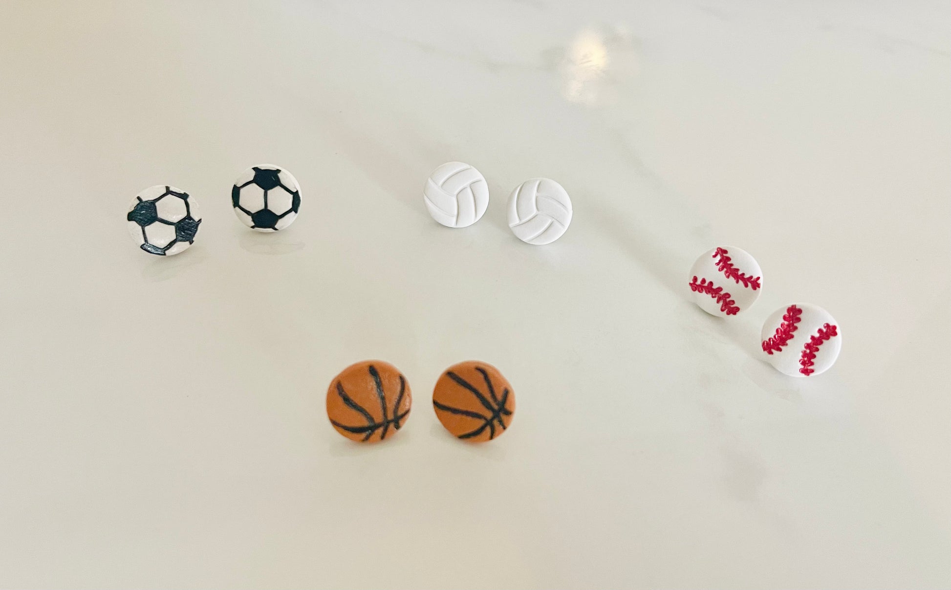 Show your team spirit with these hand-painted sports earrings! ⚾️ 🏀 ⚽️ 🏐