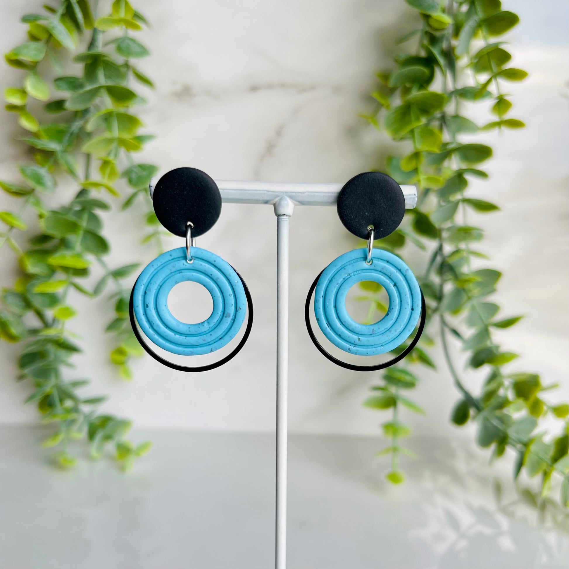 Della earrings are trendy teal clay circles with a bold black accent. These unique earrings will add a touch of playful charm to any outfit. Perfect for the fashion-forward and free-spirited soul. (You're welcome, accessory lovers!)