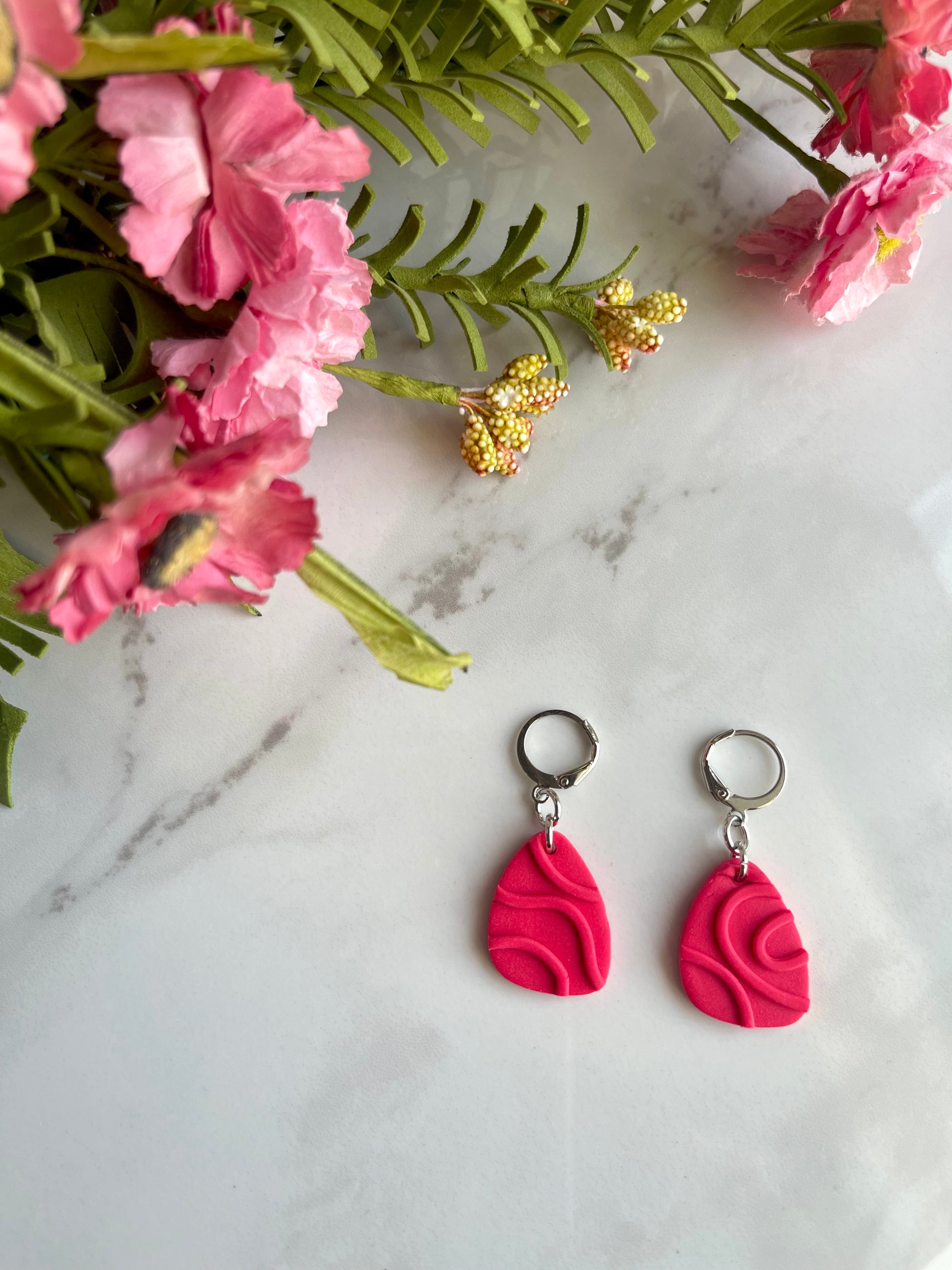 Add a subtle pop-up color to your outfit with Laura Pebble earrings. Handmade from pink clay, the pebble shape and swirling patterns make them a playful addition. With a silver clasp for easy wear. Not responsible for increased compliments."