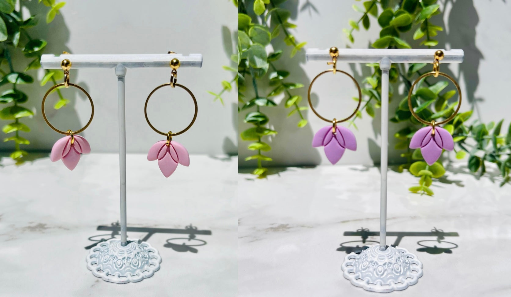 Introducing Alicia, the perfect accessory for any occasion. These delicate earrings feature a minimalist design with a beautiful flower detail, available in light pink or light purple. Elevate your style with these elegant and versatile dangling earrings.