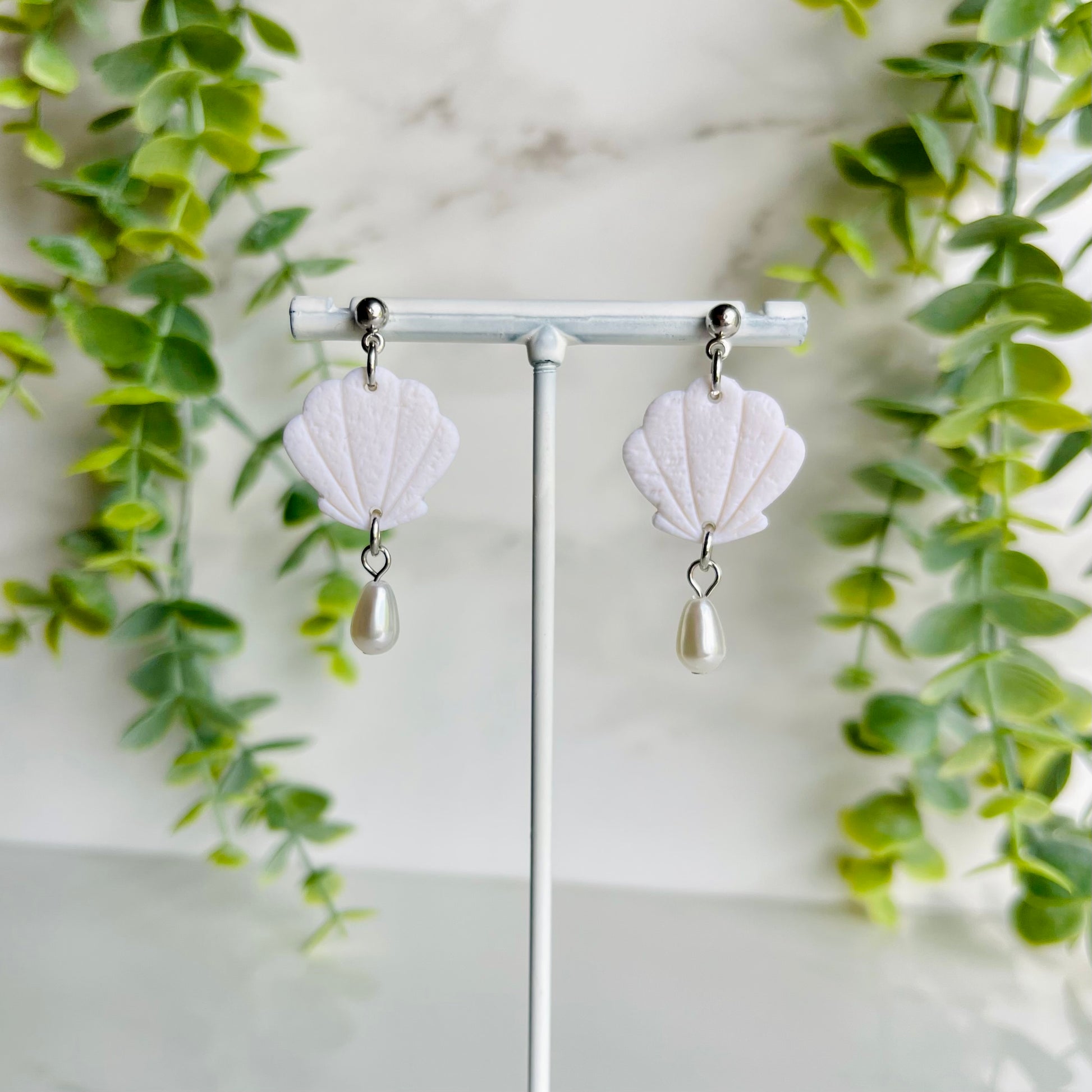 The Alejandra earrings offer a unique, oyster-inspired design crafted from clay and accented with a faux pearl charm. These elegant earrings are perfect for adding a touch of seaside charm to any outfit.